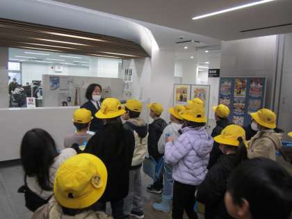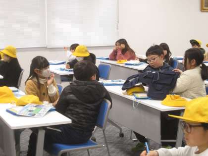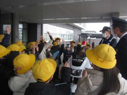 施設の中や白バイを見せていただきました。白バイにまたがり、ポーズを決める子供たち。白バイ隊員になりきっていました。その後、警察官の方に質問をしたり、防弾チョッキや警棒を見せていただいたりしました。社会科で学習したことを基に、実際の警察官から聞く情報に一生懸命にメモをとる子供たち。また、防弾チョッキを持って、「すごく重いし、硬い!これで体を守るんだ。」「こんな重い服を着ているんだ!」と、実感した子供たちでした。
