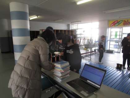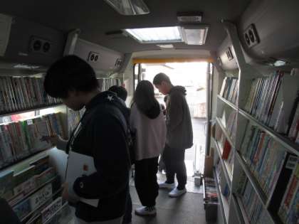 今年度、本を借りることができるのは最後でした。子供たちは、図書室にはない本に出会える自動車文庫の日を楽しみにしています。