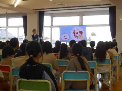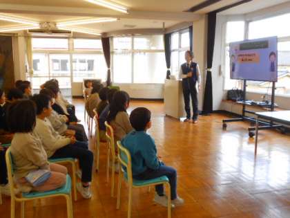 富山県警察少年サポートセンターの出前授業、子どもを性被害から守る「くもくん教室」を実施しました。今日は、2年生と3年生が参加し、明日、1年生が参加します。