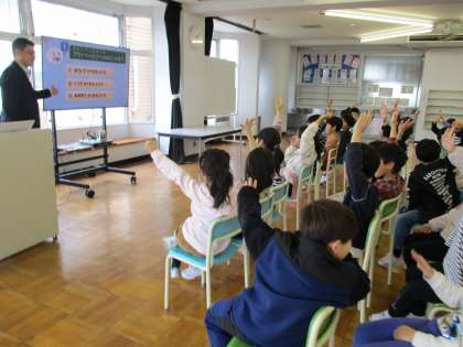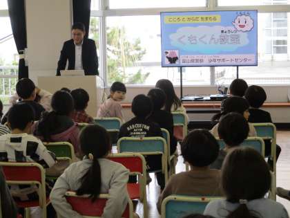 1年生が、くもくん教室を行いました。体にはプライベートゾーンという、他の人に見せたり触らせたりしない、大切な場所があることを知りました。今日教わったことを忘れずに、自分の体も、周りの人の体も大切にする心をもって生活にしてほしいです。
