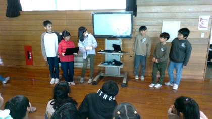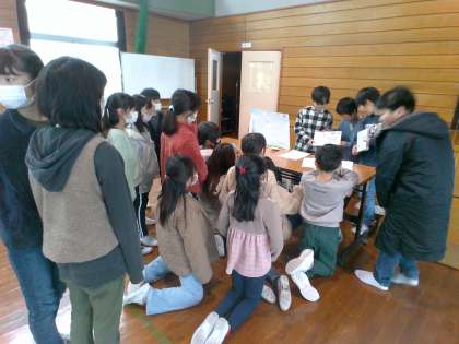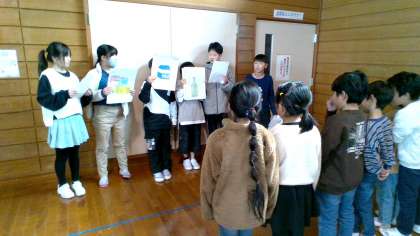 本日、新保っ子向けに「環境フェスティバル パート2」を体育館で行いました。すべてのチームが一斉に発表し、自由に見て回ってもらいました。今回は新保っ子に向けて行ったので、クイズの内容を変えたり、言葉を分かりやすく言い直すなど、相手を意識した発表ができていました。これをきっかけに4年生が調べたことや思いが伝わり、少しでも環境問題について考えてくれる人が増えると嬉しいなと思います。