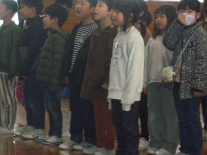 今日は、卒業を祝う会がありました。6年生さんと手を繋いで入場し、こいぬのマーチ6年生バージョンを歌いました。これまでの感謝とこれからも頑張ってね!の気持ちを込めて一生懸命歌っていました。