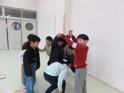 特に、いろいろな国の踊りの音楽が好きなようで、フィリピンの「ティニクリン」、デンマークの「エースオブダイヤモンド」、ロシアの「タタロチカ」は、大盛り上がりでした。最後は大きな円になって踊りました。音楽でみんなとつながることができました。