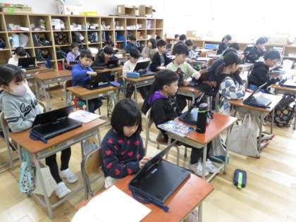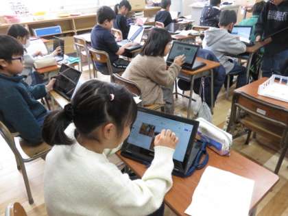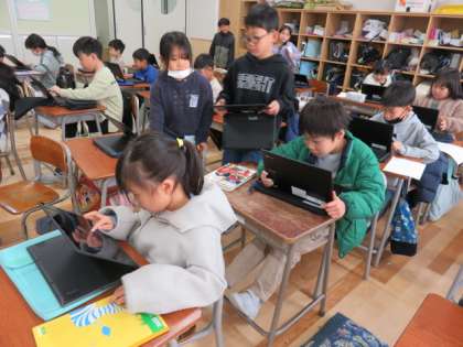 2年生:2年生の思い出:3月8日(金) 公開日 2024/03/08 更新日 2024/03/08 2年生の部屋 2年生の思い出の写真を選び、ジャムボードでアルバムを作っています。ドライブにある写真を選んで挿入し、テキストで文字を入力します。 作業の手順にも慣れ、黙々と取り組んでいました。いろいろな機能を使いこなし、新しい技もどんどん身に付けていました。友達に教えてもらったり、できたページを見合ったり、楽しみながら取り組んでいました。