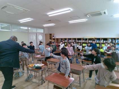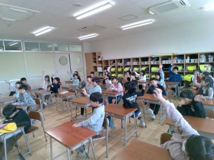 ALTのマイク先生と一緒に外国語活動を行いました。色の名前を教えてもらったり、「あたま・かた・ひざ・ポン」の英語バージョンに挑戦したりしました。子供たちは、どの活動にも積極的に取り組んでいました。