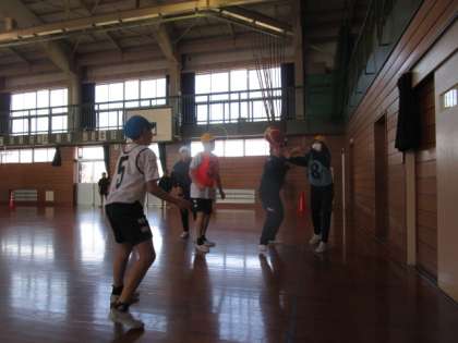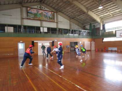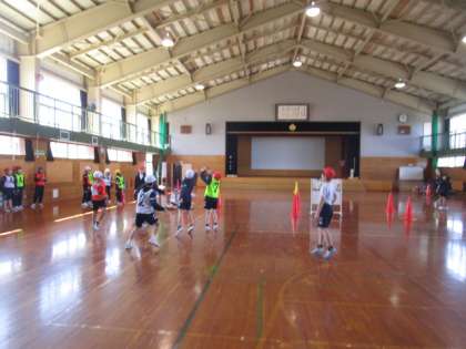 スピードバスケの学習が終わりました。最初はボールの操作に慣れず、ボールを持って思わず走り出していた子供たちも、だんだん自分でドリブルをしてゴールに向かったり、シュートをしたりすることができるようになりました。