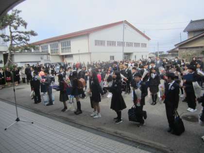 肌寒い日となりましたが、卒業生の登校、下校の際は、明るい日が差しました。