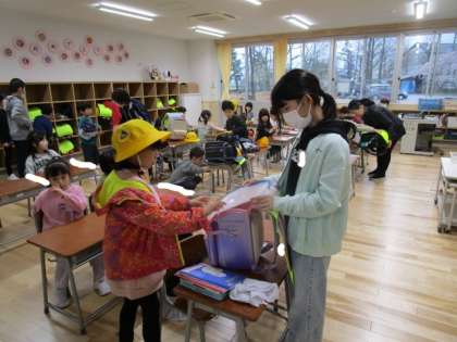 毎日1年生と関わる中で、どのように手伝ったり声を掛けたりしたらよいかを考え、実行している6年生です。