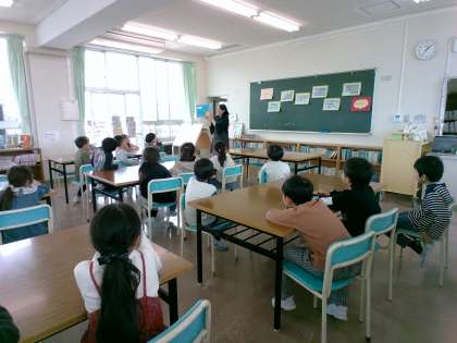 待ちに待った本の貸出が始まりました。今日の図書館オリエンテーションでは、図書室の使い方の確認をしたり、司書の先生に読み聞かせをしてもらったりしました。最後は、たくさんある本の中から気になる本を探して読んだり借りたりしました。約束を守ってたくさんの本を読みましょう!