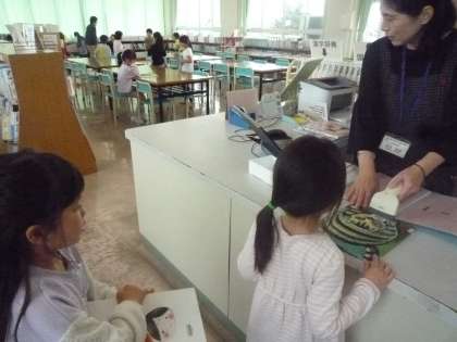 1組は図書室オリエンテーションを行いました。司書教諭から図書室の利用の仕方、マナーを聞き、読み聞かせをしてもらいました。その後、1冊ずつ貸し出しをしました。これから図書室を利用し、本が大好きになってもらえたらと思います。明日は2組です。