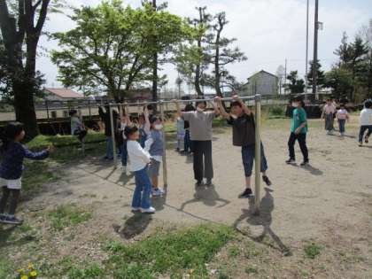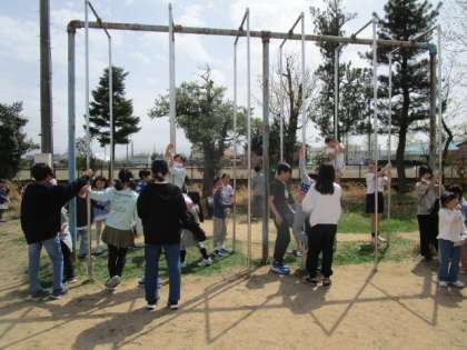 今日も1年生さんと遊びました。今回は「ドッジボール」「鬼ごっこ」「遊具」「散歩」の中から、好きな物を選んで遊びました。暑すぎるぐらいの青空の下、思いっきり遊ぶことができました。
