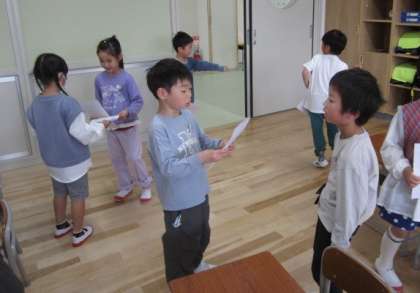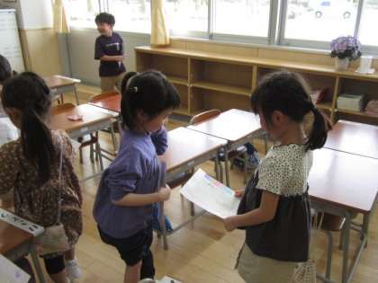 今日の国語では、昨日作った名前カードを使って、自己紹介をしました。しっかりと相手の顔を見ながら、多くの友達と自己紹介をしていました。