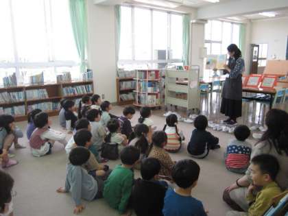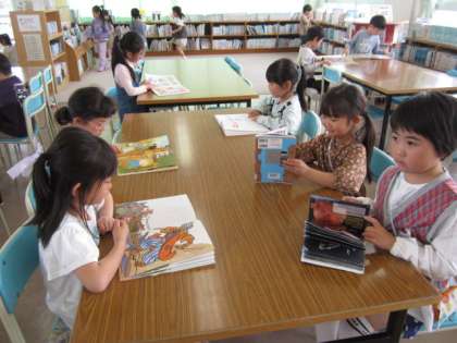 図書室の使い方や、ほんの扱い方を知りました。花に関する本でも、図鑑や写真の本、育て方の本、絵本など、多くの種類があることが分かり、びっくりしていた子供たち。多くの本から、自由に好きな本を選び、とても楽しそうでした。