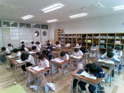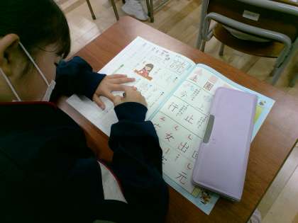 漢字の学習が大好きな2年生です。2年生では、160字学習します。リズムよく空書きしてから、一人ひとり集中して練習に取り組んでいました。