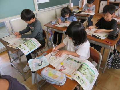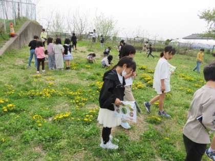 教科書を見ながら草花の名前を調べたり、タンポポのおしべの先にたくさんの花粉がついているのを見付けたりして、大喜びしていました。