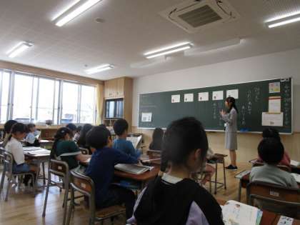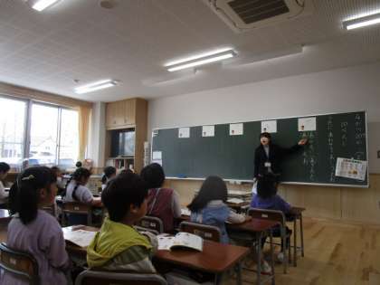 1年生は、初めての学習参観でした。「うたにあわせて あいうえお」の学習です。口の形を確かめながら、大きな声で読みました。