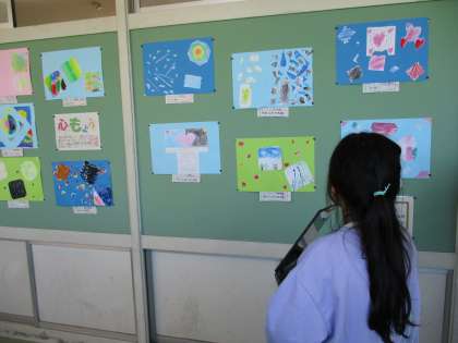 先週完成した「心のもよう」の作品鑑賞会をしました。友達のすてきな作品を見つけてタブレットに入力しました。「色づかいがきれいだな」「紙を手でちぎることで不安な気持ちが上手く表現されているな」とよさを積極的に見つけようとする姿がすてきでした。