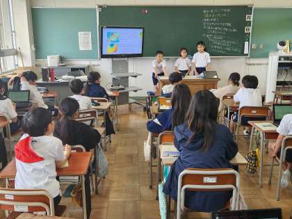 今までで調べてまとめたことまでをグループごとに発表し、質問を受けたりアドバイスをもらったりして、今後の学習の見通しをもちました。