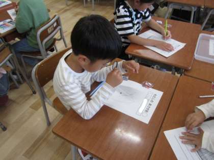 今日から、朝顔を育てる学習に入りました。「どんな色の花が咲くのかな?」「楽しみ!」と、ワクワクした様子。