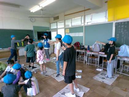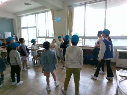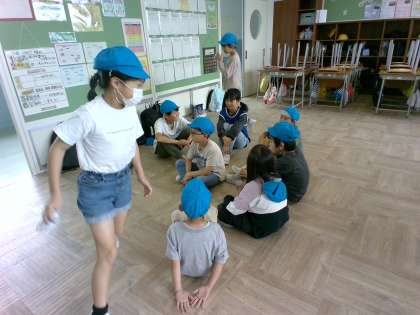 班でカードを作った後は、6年生が考えてきた遊びで遊んでいます。2回目の縦割り活動なので、少しずつ、みんなの笑顔が増えてきていますね。