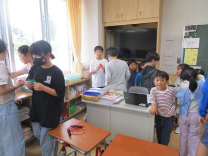 今日の朝、1年生が「6年生ありがとう集会に来てください」と招待状を教室まで持ってきてくれました。4月から朝の準備の手伝いをしたり、連絡プリントを貼ったりしてくれてありがとうの気持ちで、集会を開いてくれました。一緒にドッジボールをしたり、メッセージが書かれた折り紙を探す宝探しゲームをしたりして、楽しい時間を過ごしました。1年生さん、ありがとう!