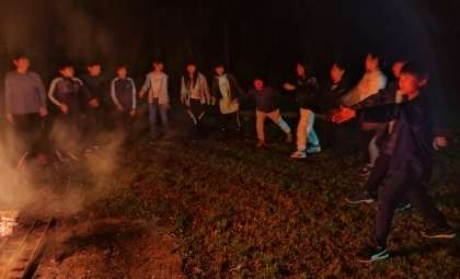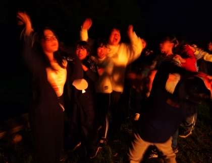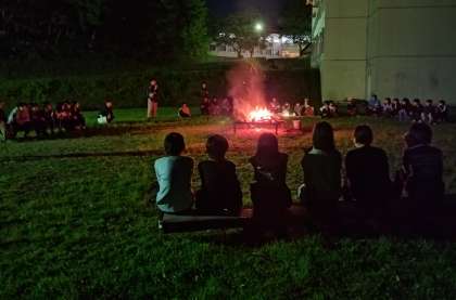 火がついた後は、ジャンケン列車やリーダー探しをして盛り上がりました。強かった火の勢いと弱まり、キャンプファイヤーを終えました。