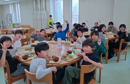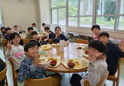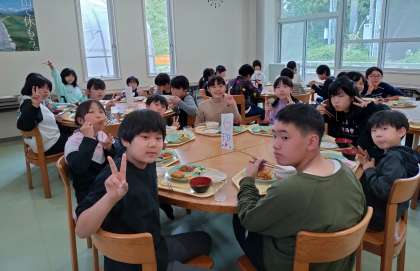自然の家での最後の食事です。登山の後なのでお腹ぺこぺこ。焼きそばやフルーツヨーグルトをたくさんおかわりして食べ、大満足です。