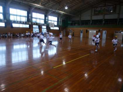 体育で20メートルシャトルランを行いました。自分たちで数えるのは難しいので、5年生に手伝ってもらいました。走り続けることが初めての人もいましたが、一生懸命取り組みました。最後には5年生にお礼を言い、握手もしました。これを機に5年生とも仲を深めることができました。
