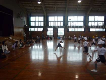 体育で20メートルシャトルランを行いました。自分たちで数えるのは難しいので、5年生に手伝ってもらいました。走り続けることが初めての人もいましたが、一生懸命取り組みました。最後には5年生にお礼を言い、握手もしました。これを機に5年生とも仲を深めることができました。