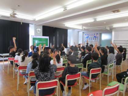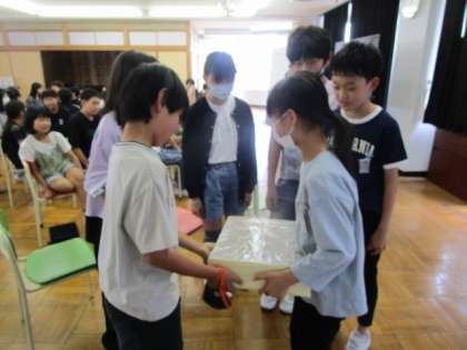 今日は富山財務事務所の方に来ていただき、税金や財政のことについて教えていただきました。子どもたちは、自分が学校に通うのに、6年間で3億円以上のお金が使われていることを知りました。最後に一億円のレプリカをもち、一億円の重みを感じました。