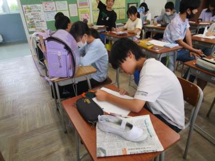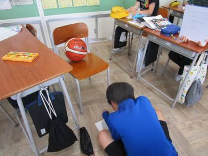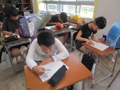図画工作科の時間に、思い入れのあるものを描いています。まずは鉛筆で下がきから。この後色鉛筆や水彩を使って作品を仕上げていきます。