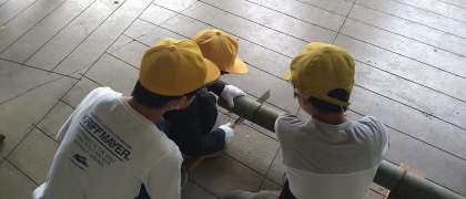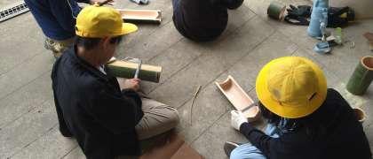 明日の野外炊飯のために、竹の器づくりをしました。のこぎりやなた、やすりを使いこなして、マイ器の完成です。