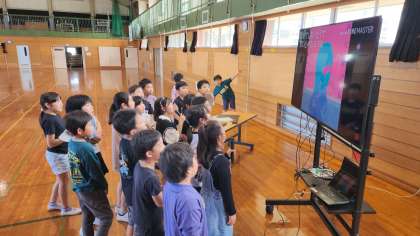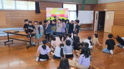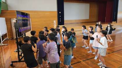 学年活動で体育館に集まり、歌を歌ったり聴いたりしました。
