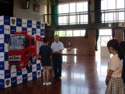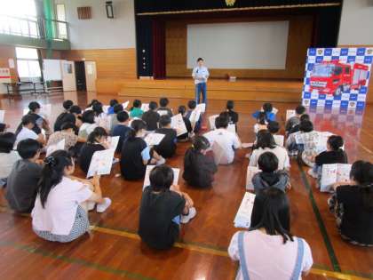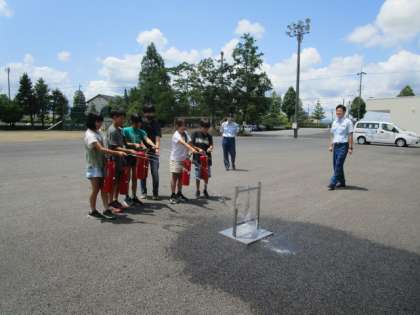 式の後には、防火・防災教室を行い、消火器体験を行いました。