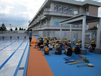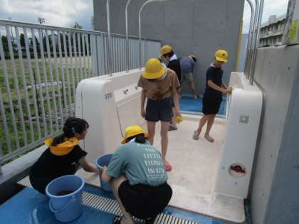2時間でとてもきれいになったので、気持ちよく水泳学習をスタートできそうです。6年生のみんな、ありがとう!
