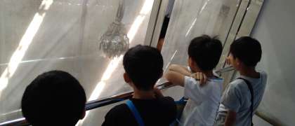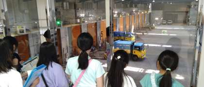 ゴミ収集車が入ってくるプラットフォーム、ゴミをためるピットを見学しました。