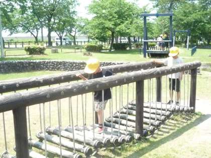 お弁当を食べた後は、ターザンロープやアスレチックなどで楽しく活動しました。元気いっぱい体を動かしました。