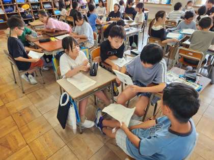 社会科見学で学んだこと、それについての感想、これから自分が取り組んでいこうと考えたこと等を、グループや学級全体で話し合いました。