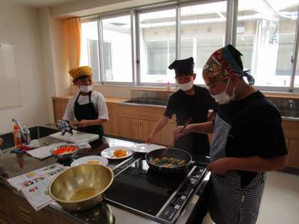 調理実習をしました。今回は「いろどりいため」と「スクランブルエッグ」を作りました。今回は2品作ったので、どのような手順で作業を進めたらよいか、班で話し合って決めました。野菜が少し固かったようですが、美味しくできました。