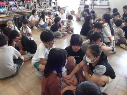 学年で集まり、環境問題について知っていることをもとに話し合い、今後の学習について見通しをもちました。