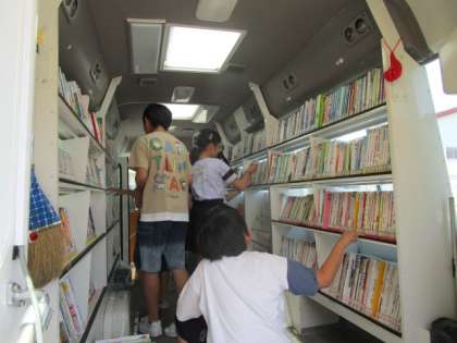 今日は月に1回の自動車文庫の日でした。たくさん本があるので、じっくり悩んで借りる本を決めました。