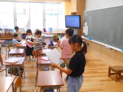 さて、令和の学校は「個別最適な学び」と「協働的な学び」がキーワードです。今日の2年生の音読の学習では、グループで取り組んでいる子、一人で取り組んでいる子など、思い思いに自分の学びのスタイルで取り組んでいました。「学ぶたのしさ」を目指して、授業の改善に取り組んでいます。