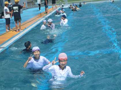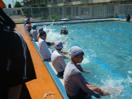 プール開きの式の後、6年生は今年度最初の水泳学習を楽しみました。プール掃除を2年間頑張ったので、1番にプールに入りました。暑かったので、冷たい水がとても気持ちよかったです。小学校生活最後の水泳学習、楽しみながら技能を高めていきたいと思います。