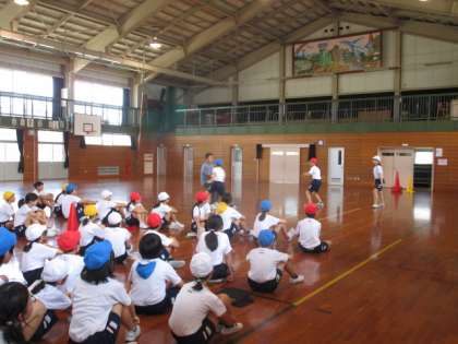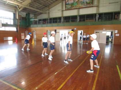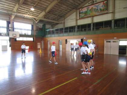 体育科の学習では、フラッグフットボールの学習をしています。ファミリーで得点を取ることができるように、攻めと守りの作戦を考えています。1回の攻撃で6点とれることができるように、作戦を練っているところです。