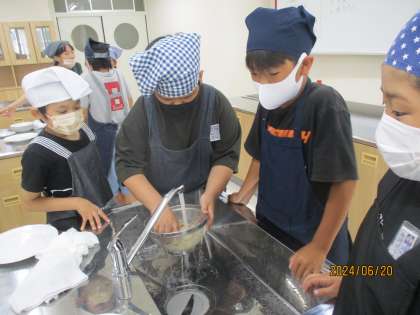 ゆでいもを美味しく食べるため子どもたちは、色やにおいの変化を観察していました。だんだん黄みがかっていく様子を観察できた班もありました。
