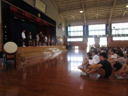 受賞伝達式の後、6月30日(日)に行われる「第40回全国小学生陸上競技交流大会富山県大会」の壮行会を行いました。市の大会を勝ち上がり、県大会に臨むみなさん、自分の力を出し切ることができるよう、頑張りましょう!