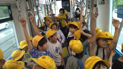 続いて市内電車に乗り、まちなかの様子を眺めました。まちなかの様子を知ることができました。