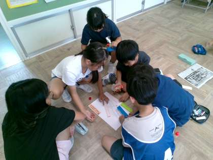 「走るのが速くなりたいな」「泳げるようになりたいな」「友達ともっと仲よくなりたいな」など、子供たちは思い思いの願い事を短冊に書きました。そして、短冊を笹の絵が描かれた画用紙に貼りながら、縦割り班の仲間の願い事を聴き合いました。みんなの願い事が叶いますように!