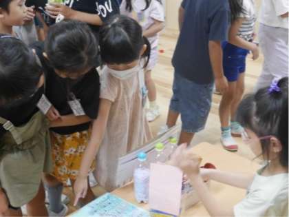 メニューや商品、トッピング、景品等たくさん準備をしましたが、あっという間に売り切れになってしまいました。お祭りが終わった後に振り返りをしました。「こんなに来てくれると思わなくてびっくりしたよ」「優しい言葉をかけてくれて嬉しかった」と大満足な様子でした。「次するときは商品を返してもらえるようにしたい」「今度はお客さん側の気持ちを考えたい」と次のお祭りに向けてもう気持ちが向いているようでした。またみんなで楽しいことを考えていきたいと思います。