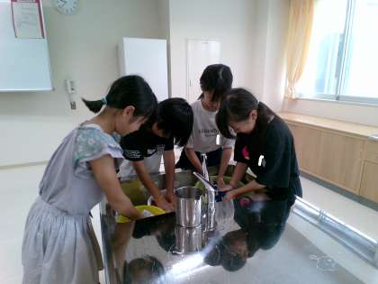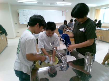 1組の様子です。自分たちが着るものなので、汚れが落ちるよう、何度も洗っていました。